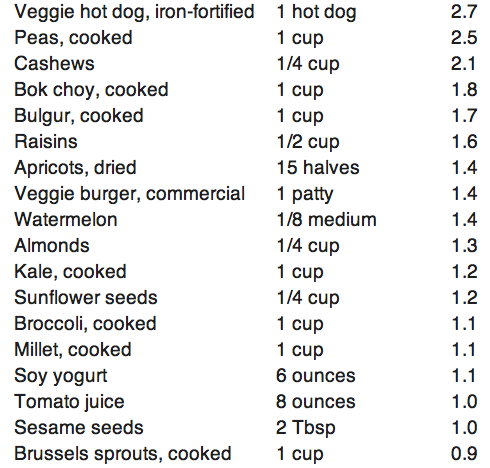 Since that initial dizziness, I’ve been extremely mindful about making sure my body is getting the correct amount of iron, protein, and calcium while eating plant-based foods, so I made sure to do research. In researching what foods I should be eating, I came across a great website called “vrg.org,” which has been a wonderful resource for me and is great for any new vegan eater! Here’s a helpful table which has helped me in meal planning and even gives the amount of iron found in certain foods!