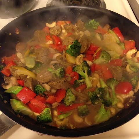 Veggie Stir-Fry with Veggie Sausage + Kale and Beet Stir-Fry